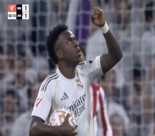 點球破門,維尼修斯第13次西甲對陣馬競首次取得進球 懂球帝 2026-03-23 08:12:16 西甲第29輪,皇家馬德里主場對陣馬德里競技,下半場維尼修斯主罰點球破門,這是維尼修斯首次在西甲對陣馬競的比賽中取得進球。此役主場對陣馬德里競技,首發出戰的維尼修斯在比賽第52分鐘罰入由卜拉欣-迪亞斯制造的點球,幫助皇家馬德里1-1扳平比分。這是維尼修斯職業生涯第13次在西甲對陣馬競首次取得進球。此役之前,馬競是維尼修斯西甲從未進球的對手中交手次數最多的。西甲免費觀看_馬競免費觀看_英超聯賽免費觀看_西甲高清在線_馬競高清在線_英超聯賽高清在線 西甲 馬競 英超聯賽 馬德里競技 皇家馬德里 維尼修斯·儒尼奧爾 上一篇: 又是直紅,巴爾韋德皇馬生涯2次染紅都是對陣馬競 下一篇: 4球7助,巴爾韋德追平皇馬生涯單賽季西甲參與進球紀錄