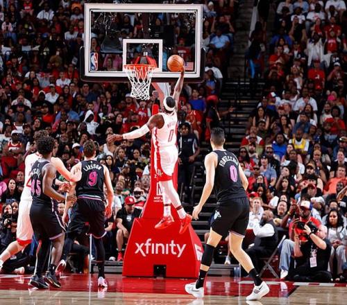 本場比賽中,火箭的替補后場球員阿隆-霍勒迪(Aaron Holiday)的表現還是值得肯定的,他也是難得發揮出了自己的作用。霍勒迪全場出場13分18秒,投籃4中3,三分線外3中2,得到了8分2助攻1搶斷的數據,還有1次犯規,正負值也是達到了全隊次高的+12。霍勒迪在進攻端的效率相當不錯,他也是抓住了有限的機會展現出了自己的投射能力并且拿到了一些分數。除此之外,霍勒迪也算是具備一定的傳球能力和組織能力的。至少在本場比賽中,霍勒迪在防守端也沒有出現什么太多的問題。霍勒迪在本場比賽中算是很好地扮演了奇兵的角色,他在場上時球隊的局面也是相當不錯的,他也為球隊的勝利做出了自己的貢獻。
