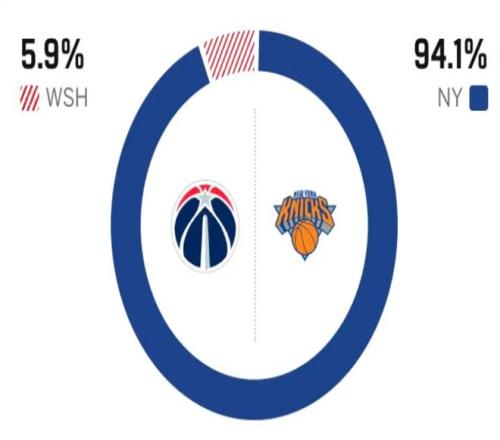 賽前,美媒ESPN對本場比賽進(jìn)行了勝率預(yù)測,奇才隊勝率僅有可憐的5.9% ,尼克斯勝率則高達(dá)94.1% , 這差距真是懸殊。