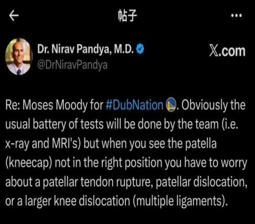 穆迪這傷,大概率賽季報銷,甚至會影響未來的運動能力。