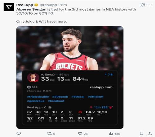 5.申京成為歷史第三個以80%命中率拿到30+10+10的球員,比肩張伯倫、約基奇;