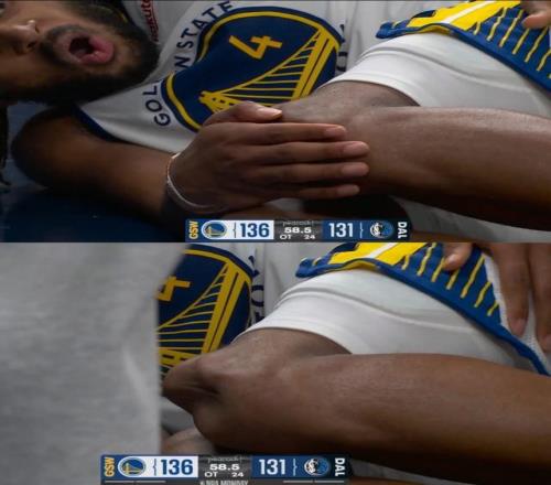 事情是這樣的:加時賽末段,勇士以136-131手握領先。穆迪機敏搶斷,本以為能來個快攻一條龍暴扣把分差拉大到7分,徹底殺死比賽。結果天有不測風云,扣籃沒成,人卻痛苦地倒在了地上死死捂住自己的腿。