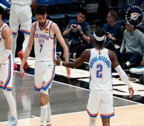相比馬刺隊,估計還是雷霆更有冠軍相。都是年輕球隊,但雷霆還是要更加老道一些,他們連續(xù)兩年常規(guī)賽西部第一,上賽季拿到隊史第一冠,當家球星亞歷山大也是超巨級別,在去年就實現(xiàn)了個人榮譽的大滿貫,單賽季奪得MVP+FMVP+得分王的超級榮譽,在NBA的歷史地位,一下子就擠進前30了。亞歷山大有一個很厲害的地方,他已經(jīng)連續(xù)4個賽季,場均得分超過30分的同時,投籃命中率高于50%,NBA歷史上的后衛(wèi)中,只有邁克爾喬丹做到過。而本賽季亞歷山大的投籃命中率再創(chuàng)新高,達到了驚人的55%,在后衛(wèi)里面排名第一位。