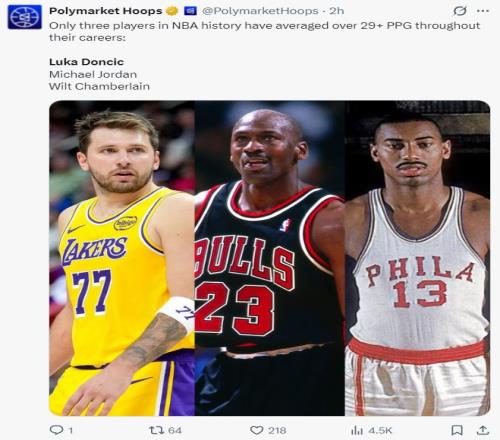 13.場(chǎng)均得分超過(guò)29分的球員只有東契奇、喬丹、張伯倫;