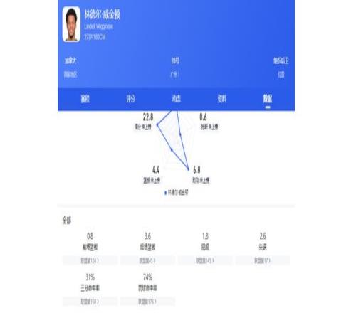 本賽季29次出場后,他場均可為廣州隊貢獻22.8分6.8助攻4.4籃板,其中場均得分高居聯盟第三,場均助攻高居聯盟第一。