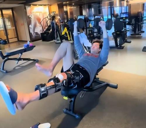 術后第七天,郭艾倫已現身康復中心,佩戴專業膝關節護具進行非負重力量訓練。訓練內容包括核心穩定、健側肢體強化、等長收縮及低強度本體感覺激活,訓練強度由康復團隊嚴格控制,但其專注度與配合度被醫療組評價為“教科書級別”。盡管患側大腿圍度已出現明顯萎縮,但他通過系統性訓練,正全力遏制肌肉流失,為后續負重與爆發力重建打下基礎。