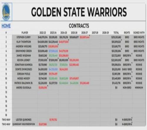 然而2022年夏天的勇士整體球員薪資實(shí)在是太高了,簽下麥克朗的時(shí)候全隊(duì)也只有13名球員,預(yù)計(jì)奢侈稅已經(jīng)超過(guò)1.51億美元。