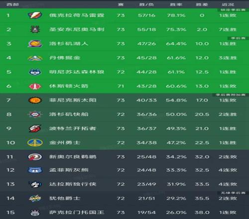 西部最新積分榜