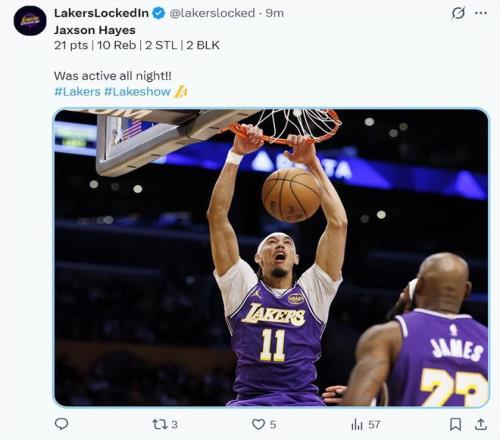 此役對于海斯來說是湖人生涯之夜:1.21分賽季新高;