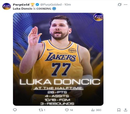 東契奇首節(jié)的手感非常好,尤其是他外線開了后就防不住了,單節(jié)12分鐘,12中8,三分5中3,罰球2中2,拿到21分2助攻,命中率66.7%,三分命中率60%,真實(shí)命中率81.5%,正負(fù)值+17。