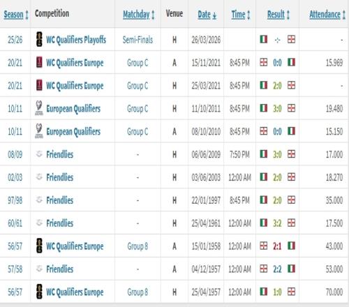 68年不敗!意大利隊史對陣北愛爾蘭11場僅1負(fù),那次告負(fù)是1958年 轉(zhuǎn)會市場 2026-03-26 20:21:33 體育播報3月26日宣 明天凌晨,世預(yù)賽歐洲區(qū)附加賽半決賽,意大利將對陣北愛爾蘭。據(jù)德轉(zhuǎn)數(shù)據(jù)統(tǒng)計顯示,意大利隊史一共11次對陣北愛爾蘭,取得7勝3平1負(fù)。意大利唯一一次輸給北愛爾蘭是1958年1-2告負(fù),距今68年。這68年來,意大利和北愛爾蘭對陣8場6勝2平,保持不敗,且自1997年2-0贏球以來,近7場0失球。足球免費(fèi)觀看_北愛爾蘭免費(fèi)觀看_意甲免費(fèi)觀看_足球高清在線_北愛爾蘭高清在線_意甲高清在線 足球 北愛爾蘭 意甲 國家隊 意大利 上一篇: 帕托:我從未覺得自己是新羅納爾多,頻繁受傷讓我不再相信自己 下一篇: 德轉(zhuǎn)曬意大利最后一場世界杯陣容:布馮、皮爾洛、巴洛特利在列