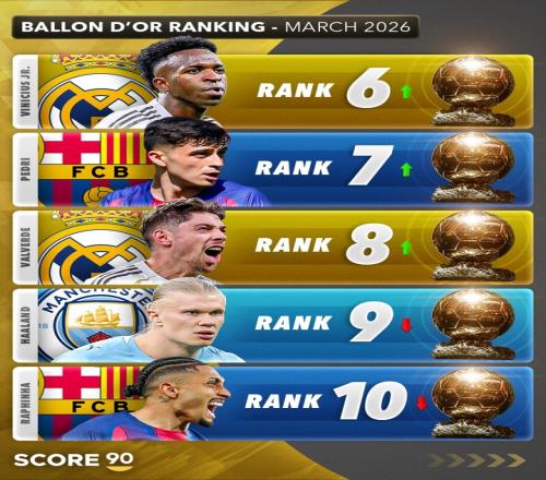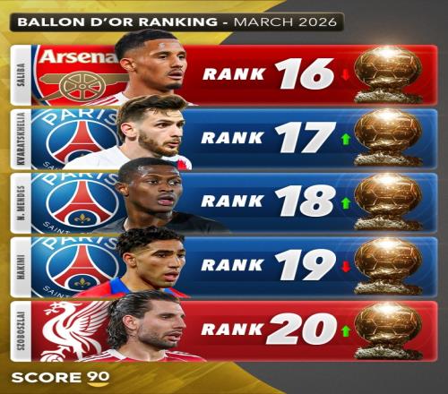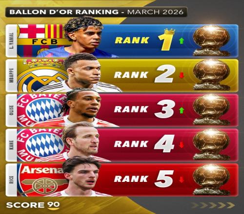 Score90盤點現(xiàn)階段金球獎排名:亞馬爾超姆總登頂凱恩第4賴斯第5 直播吧 2026-03-27 07:19:52 體育播報03月26日宣 Score90對到3月底為止,各大球員的表現(xiàn)做了盤點,并更新了他們對金球獎在現(xiàn)階段的排名情況。其中,亞馬爾超遠姆巴佩升至第一,詳細如下。1-亞馬爾 ↑2-姆巴佩 ↓3-奧利塞 ↑4-凱恩 ↓5-賴斯 ↓6-維尼修斯 ↑7-佩德里 ↑8-巴爾韋德 ↑9-哈蘭德 ↓10-拉菲尼亞 ↓11-B費 ↑12-維蒂尼亞 ↓13-加布里埃爾 ↓14-路易斯·迪亞斯 ↓15-登貝萊 ↓16-薩利巴 ↓17-克瓦拉茨赫利亞 ↑18-努諾·門德斯 ↑19-阿什拉夫 ↓20-索博斯洛伊 ↑ 足球免費觀看_姆巴佩免費觀看_凱恩免費觀看_足球高清在線_姆巴佩高清在線_凱恩高清在線 足球 姆巴佩 凱恩 英超 西甲 意甲 德甲 法甲 拜仁慕尼黑 巴黎圣日耳曼 皇家馬德里 巴塞羅那 曼聯(lián) 曼城 阿森納 利物浦 上一篇: 記者:紐卡不準備出售霍爾,托納利、吉馬良斯很難同時離隊 下一篇: 記者:托納利愿回意大利但經(jīng)濟上難以實現(xiàn),英超、皇馬是現(xiàn)實選擇