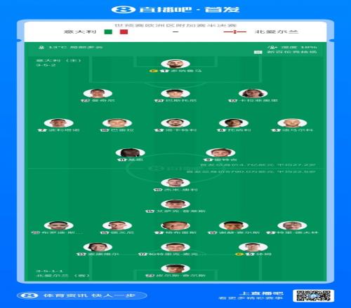 體育播報3月27日宣 世預賽歐洲區附加賽半決賽,意大利對陣北愛爾蘭,賽前雙方首發公布。