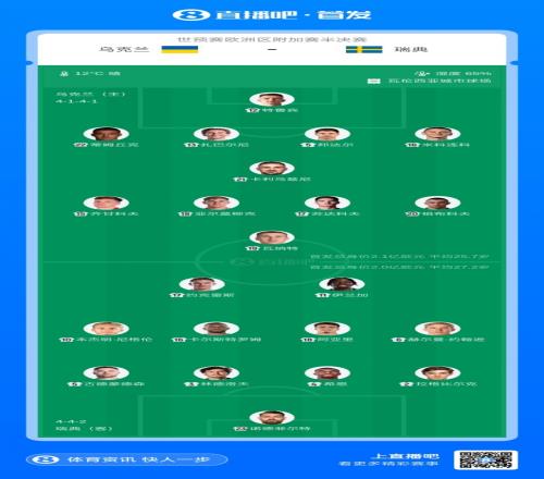 體育播報(bào)03月27日宣 北京時(shí)間3月27日3:45,世預(yù)賽歐洲區(qū)附加賽半決賽,烏克蘭vs瑞典。賽前雙方公布了本場(chǎng)比賽的首發(fā)名單。