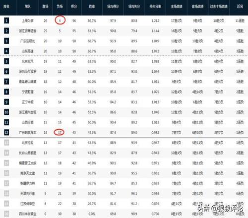 廣州男籃總戰績來到了13勝17負排在積分榜第12位,目前積分榜領頭羊上海男籃總戰績為26勝4負,這就意味著上海男籃接下來12場常規賽全輸,廣州也追不上,上海提前12輪鎖定季后賽名額。