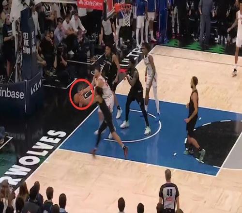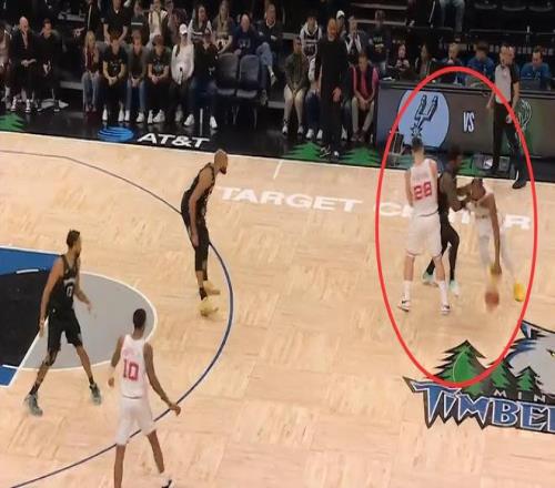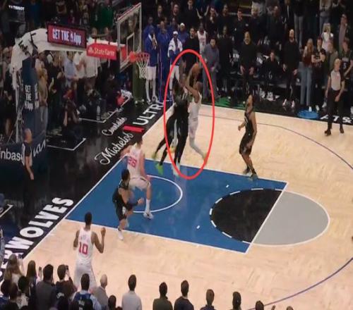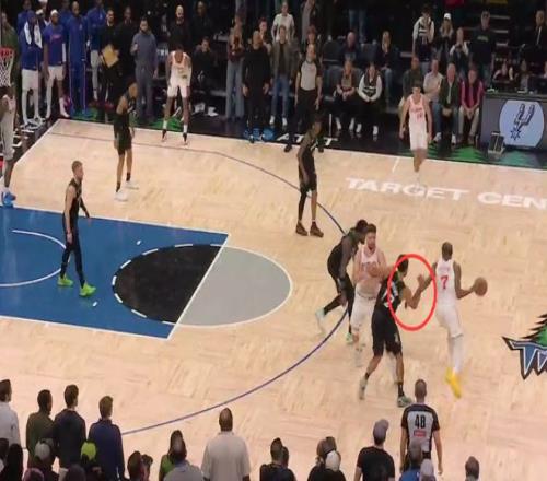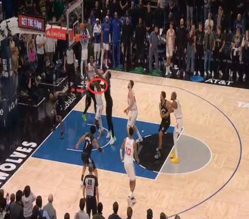 第一次發生在距離第四節結束還有1分鐘,申京為隊友設置掩護時,向右側多邁了一步,并用身體側面與蘭德爾發生身體接觸。這是一次漏吹的進攻犯規,森林狼吃虧,火箭獲利。