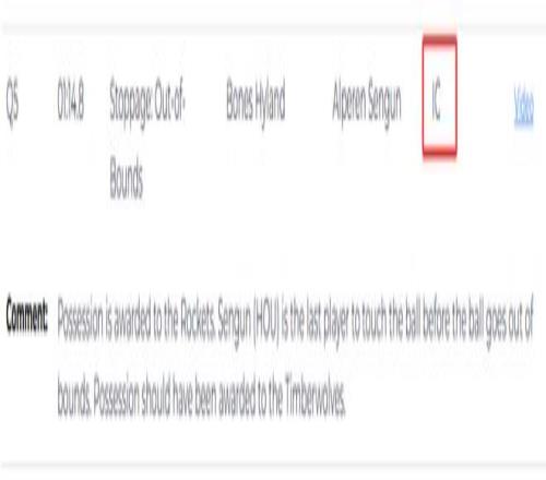 第二次發生在距離加時賽結束還有1分14.8秒,在出界球的判罰上,當值裁判把球權判給火箭,但裁判報告顯示,球出界前最后觸碰到的是申京,而不是海蘭德,因此球權應該判給森林狼。這次錯判,吃虧的還是森林狼,火箭獲利。