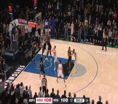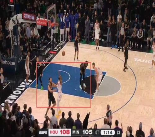 申京爭搶球過程中出界,裁判錯判森林狼出界,火箭隊獲得球權——火箭獲利