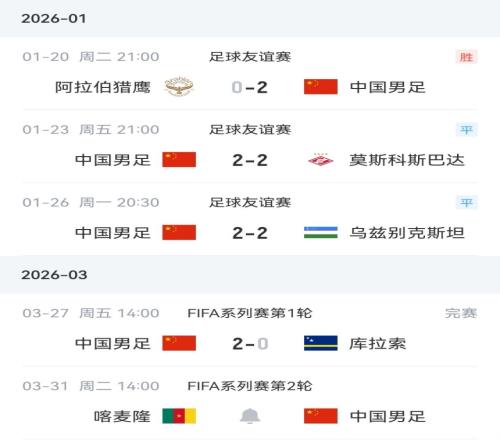 幸運“佳一”!邵佳一執教國足勝庫拉索取開門紅,韋世豪攻入首球 直播吧 2026-03-27 20:19:29 體育播報03月27日宣 FIFA系列賽,國足首戰2-0戰勝庫拉索,邵佳一取得執教國足的開門紅!本場比賽,上半場補時階段,張玉寧頭球擺渡助攻韋世豪破門,打入了邵佳一國家隊的首粒進球。下半場張玉寧再利用對手失誤打入一球。邵佳一去年11月正式上任國足主帥,今年1月他組織了第一期的國足集訓,當時國足在3場熱身賽中1勝2平,但3場比賽均為封閉的非正式比賽。北京時間3月31日下周二,國足將對陣本月FIFA系列賽的第二個對手喀麥隆。邵佳一執教國足戰績↓ 足球免費觀看_中國男足免費觀看_國家隊免費觀看_足球高清在線_中國男足高清在線_國家隊高清在線 足球 中國男足 國家隊 中國足球 點贊國足 上一篇: 20庫拉索!熱議:國足就缺陳達毅這種中場庫拉索咋進世界杯的 下一篇: 02不敵中國男足!庫拉索世界杯與德國、科特迪瓦、厄瓜多爾同組