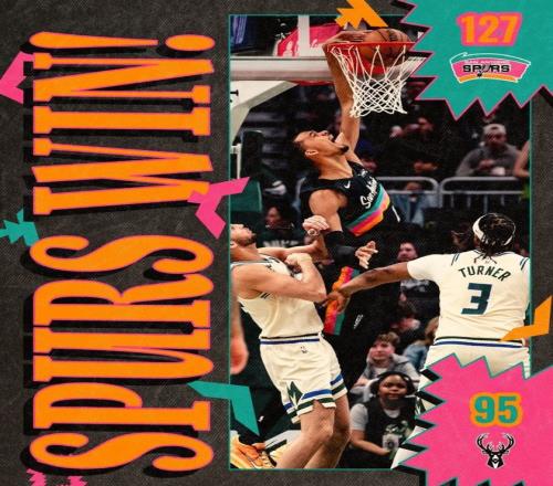 今天馬刺以127比95大勝雄鹿,徹底斷了后者的季后賽希望,文班亞馬獨(dú)得23分15籃板6助攻2搶斷1封蓋。