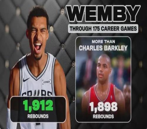 在籃板方面,文班亞馬以1912個(gè)超越了巴克利的1898個(gè)。