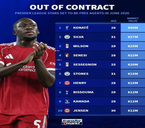 北京時間3月30日,德轉列出了英超現有合同6月到期球員的身價榜,利物浦中衛科納特以5000萬歐元高居第一,曼城的伯納多-席爾瓦和斯通斯上榜。