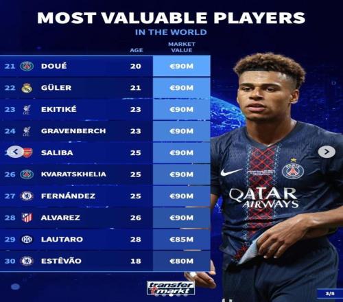 21. 杜埃(巴黎圣日耳曼)9000萬歐元