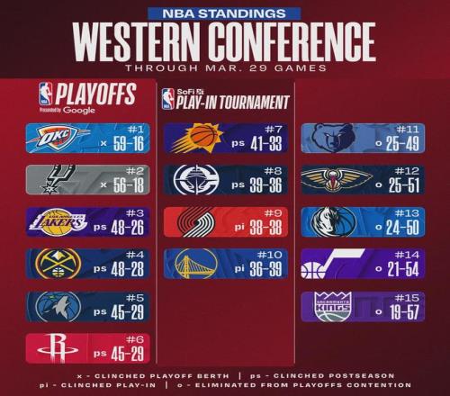 北京時(shí)間3月30日,NBA常規(guī)賽,掘金116-93大勝勇士。此役過(guò)后,掘金48勝28負(fù)依然排名西部第四,落后第三的湖人1個(gè)勝場(chǎng)。勇士36勝39負(fù)繼續(xù)排名西部第十,落后第九的開拓者1.5個(gè)勝場(chǎng),落后第八的快船3個(gè)勝場(chǎng)。