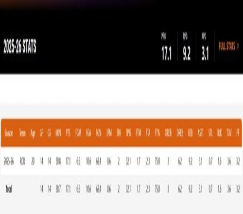 要知道楊瀚森本賽季代表混音出戰(zhàn)了14場比賽,場均30.8分鐘,拿到17.1分9.2籃板3.1助攻0.7搶斷1.6蓋帽,命中率62.4%,三分命中率32.1%,當楊瀚森來G聯(lián)賽時他就是混音內(nèi)線的第一戰(zhàn)力,季后賽海報不該給他一席之地?