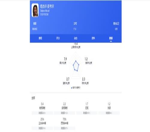 麥考爾的短板十分明顯:一是缺乏外線投射能力,場均三分命中率僅25%左右;二是組織能力一般,場均2.3次助攻的同時伴隨1.2次失誤
