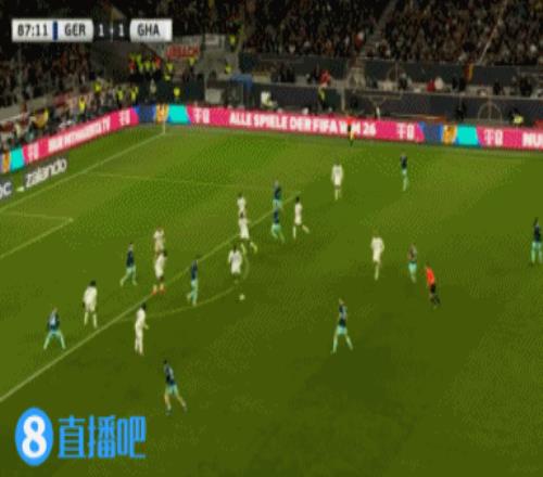 體育播報03月31日宣 德國vs加納第88分鐘,德國前場流暢配合,薩內頭球助攻翁達夫破門,此時比分變為德國2-1領先。