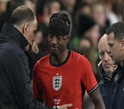 這位英格蘭邊鋒在周五于溫布利球場進行的1-1平局中,在第38分鐘與烏拉圭球員發(fā)生碰撞后倒地。