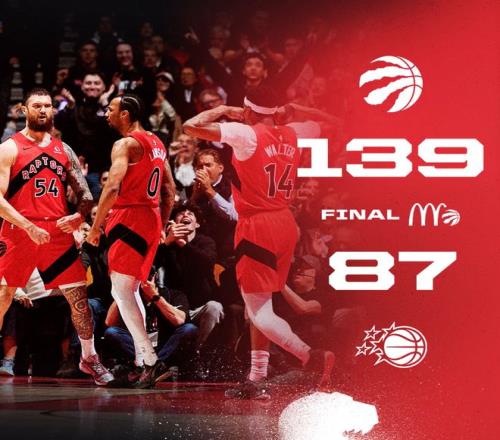 其實吧,50+分差歷史也有過,比這更多的也不在少數,但這場比賽的不同在于,魔術幾乎是只花了半節就被猛龍擊潰了,并且還創造了一個載入史冊的恥辱紀錄。