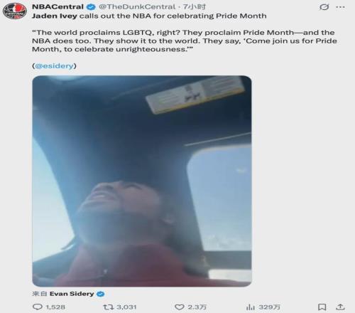 “廣告上,大街上,全世界都在宣揚LGBTQ這種不義言論,NBA也不例外,憑什么不能讓我說些正義之言,這世界簡直瘋了。”