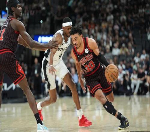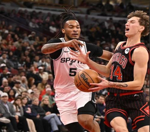 末節決戰,卡斯爾與亞布塞萊、布澤利斯在外線對轟,文班亞馬、凱爾登約翰遜攜手沖擊籃下取分,布澤利斯、塞克斯頓、瓊斯利用沖擊力得分還以顏色。文班亞馬拋投得分,隨后完成暴扣,距離終場還剩5分鐘左右,馬刺領先20分換下文班亞馬。哈珀率隊與公牛展開對轟,亞布塞萊、米勒、塞克斯頓攜手追分,公牛將分差縮小至13分。