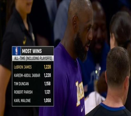 與此同時,這場比賽對于詹姆斯還有另外一個重要意義——隨著計時燈亮,宣告紫金軍團這場勝利入袋為安,這是老詹生涯第1228場勝利(常規賽+季后賽總和),追平了傳奇球星“天勾”賈巴爾,并列歷史第一。湖人名宿詹姆斯-沃西在談到詹姆斯時表示:“我從未見過有哪一位球員,能像勒布朗-詹姆斯那樣,職業生涯到這個階段還能做到現在他所做到的一切。”老詹勝場超越賈巴爾只是時間問題,以他的競技狀態來看,他的職業生涯還看不到頭,還將不斷拔高這幾個專屬于他的紀錄上限。