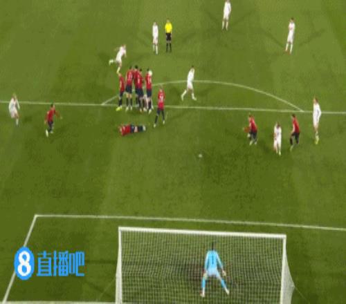 第16分鐘,達(dá)姆斯高主罰任意球射門(mén)被科瓦爾撲出。↓