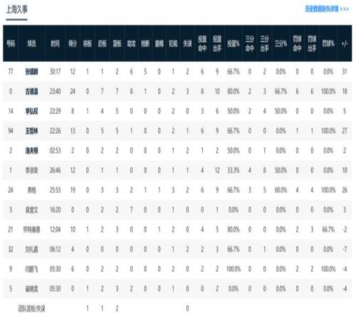 此后,李添榮連續兩次三分出手命中,上海男籃進攻再次起勢,一波14-3把分差拉開至兩位數。半場結束,上海男籃56-43領先。