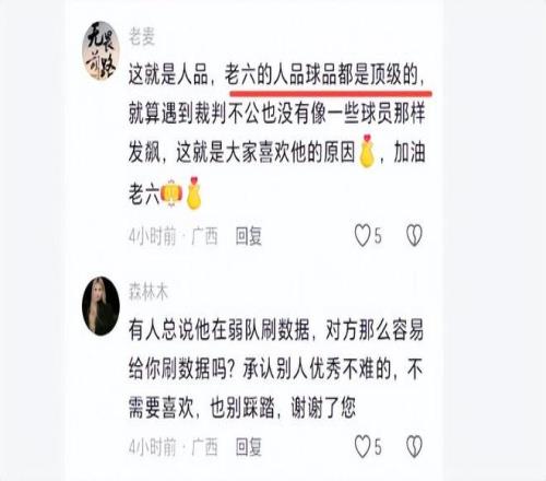 賽后抖音解說主持人姚全馬上在社媒發表評論,他說,“這是球員很有涵養的表現”、“最后一節生死時速時刻,雖然龐崢麟沒贏下比賽,但龐崢麟帶領球隊打出追分表現,展現比賽韌勁和意志品質。最后他到杜指導面前微微鞠躬,也是感謝杜指導用這樣的防守方式表達了對這名球員職業能力的最好的褒獎和認可。