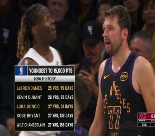 3、東契奇513場(chǎng)達(dá)成15000分創(chuàng)造歷史第4少紀(jì)錄,僅次于張伯倫(358場(chǎng))、喬丹(460場(chǎng))、賈巴爾(495場(chǎng))。