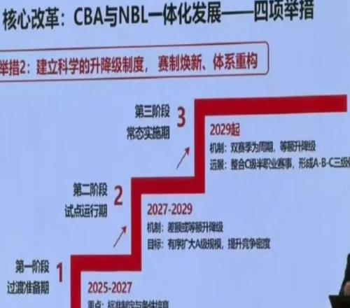 目前CBA公司已經是開始為明年做規劃了,根據CBA開會的過程當中我們可以了解到,CBA將會是重啟升降級的制度,在過去的十幾年當中,CBA一共就是只有20支隊伍的,之前很多球隊想要加入進來都被拒絕了,像是安徽文一、香港金牛等等這些球隊,因為在NBL非常吃香,但是始終敲不開CBA的大門,但是從2027年開始將會試行升降級的制度,主要就是對于CBA聯賽后四名的球隊跟NBL前四名的隊伍進行對決,輸掉的球隊將會降級發展!