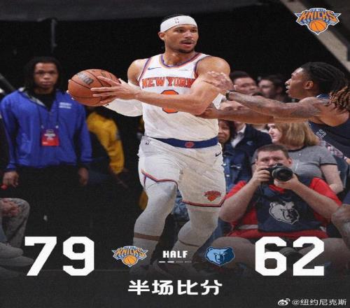 次節比賽,雙方連續兩節單節得分30+,繼續展開對攻模式對決。尼克斯保持高效進攻效率,前兩節比賽尼克斯41中29,其中三分10中7,均是達到7成準星,全隊已經3人得分上雙,唐斯13+7+5、布里奇斯17分與沙梅特10分。灰熊三分20中9,克萊頓與杰克遜均是10分,上半場結束尼克斯79-62領先灰熊。