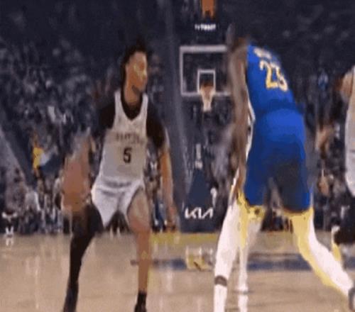 巴恩斯第四節(jié)的扣籃,勇士其他人都在擋文班。