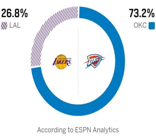 MVP熱門對決+西部強強對話!ESPN預測勝率:湖人26.8%雷霆73.2% ESPN 2026-04-02 20:43:00 體育播報4月2日宣 明天上午9點30,湖人將在客場挑戰雷霆。今天,ESPN預測本場比賽勝率,湖人26.8%,雷霆73.2%。目前,雷霆60勝16負西部第一;湖人50勝26負西部第三。 籃球免費觀看_NBA免費觀看_雷霆免費觀看_籃球高清在線_NBA高清在線_雷霆高清在線 籃球 NBA 雷霆 湖人 上一篇: 追夢:文班亞馬是唯一一名防守比我更出色的球員 下一篇: 騎勇大戰N.0!ESPN預測勝率:背靠背第二戰的勇士27.5%騎士72.5%