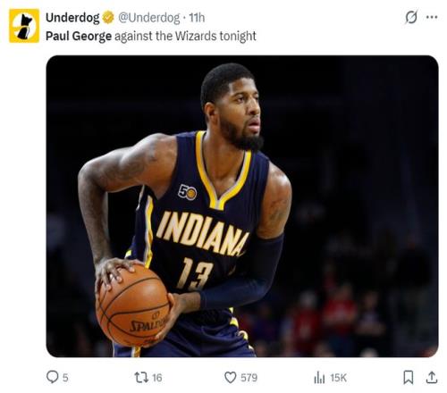 美媒Underdog寫道:這場比賽的喬治感覺像步行者巔峰期的他。