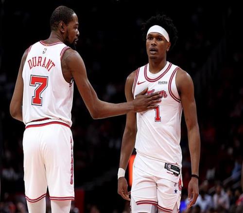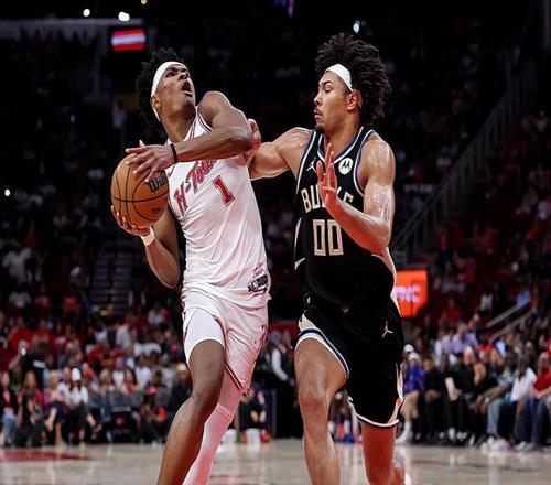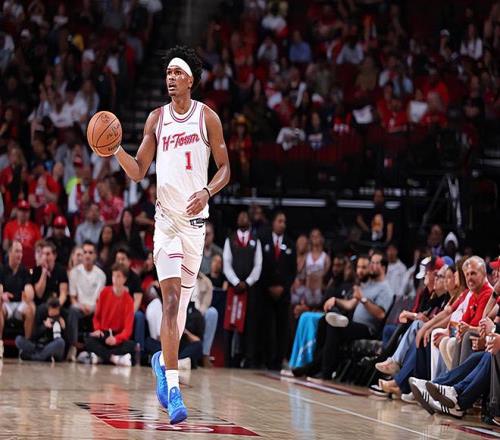 本場比賽中,火箭的先發后場新星阿門-湯普森(Amen Thompson)的表現還算是比較穩定的。湯普森全場出場39分53秒,投籃10中5,罰球8中8,得到了18分8籃板6助攻2搶斷的數據,還有1次犯規,正負值為+12。阿門還是持續了自己最近一段時間的穩定表現,他保持了尚可的進攻效率,他在對手內線的威脅度還是非常高的,終結能力也是不錯的,他在傳球和組織方面也是起到了很好的效果的,而且他在傳球和組織方面也能起到一定的作用,他在防守端也是同樣有著相當穩定的輸出。阿門在本場比賽中的出場時間又一次居高不下,但是他還是在這種情況下保持了自己在攻防兩端的水準并且為球隊的勝利做出了自己的貢獻。
