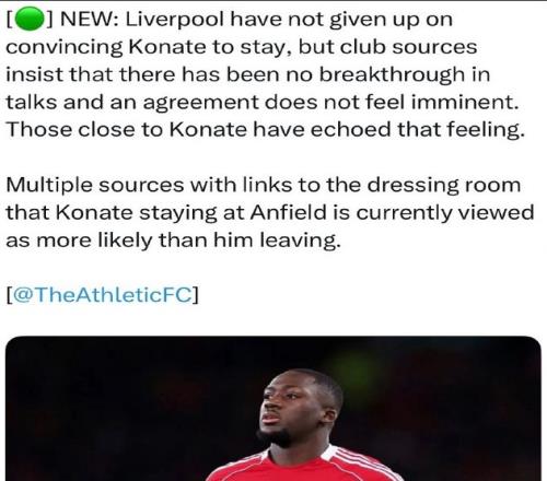 TA:利物浦并沒有放棄說服科納特留下來,但俱樂部消息人士堅(jiān)持認(rèn)為,談判沒有取得突破,協(xié)議也不是只剩簽字,科納特關(guān)系密切的人也同樣是這種感覺。