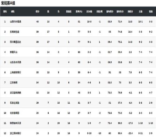 至于B組前4名球隊均至少12勝,B組第一的合肥女籃18勝2負,而B組后兩名的福建女籃僅3勝17負,江西女籃低至1勝19負。