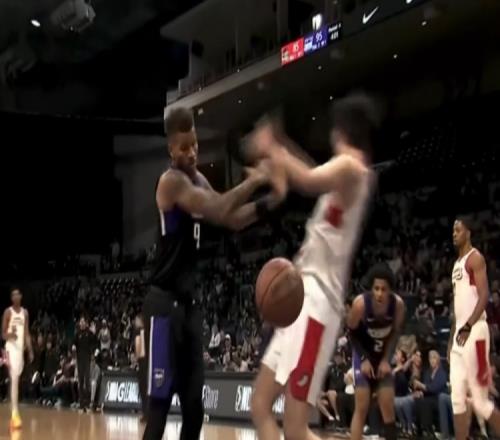 丹尼斯推倒扣籃后的楊瀚森吃T