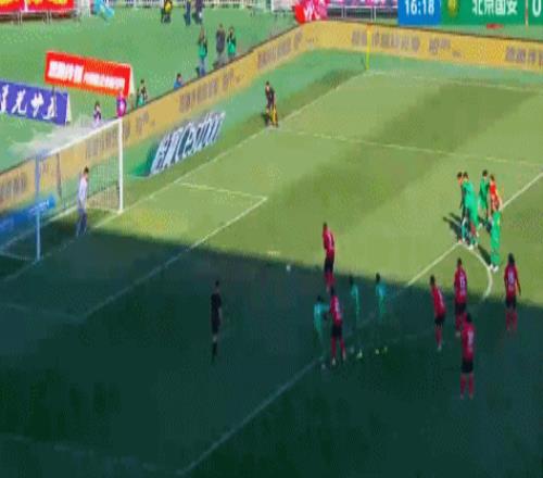 開場僅僅35秒,韓镕澤沖出禁區雙手將球擊出。主裁判向韓镕澤出示黃牌,并且判罰給北京國安禁區外任意球。